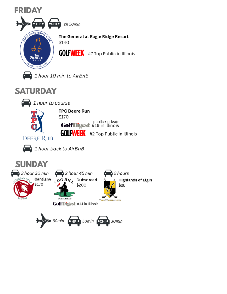 Eagle Ridge Resort has three other courses. We can play their South course on Saturday and play TPC Deere Run on Sunday.